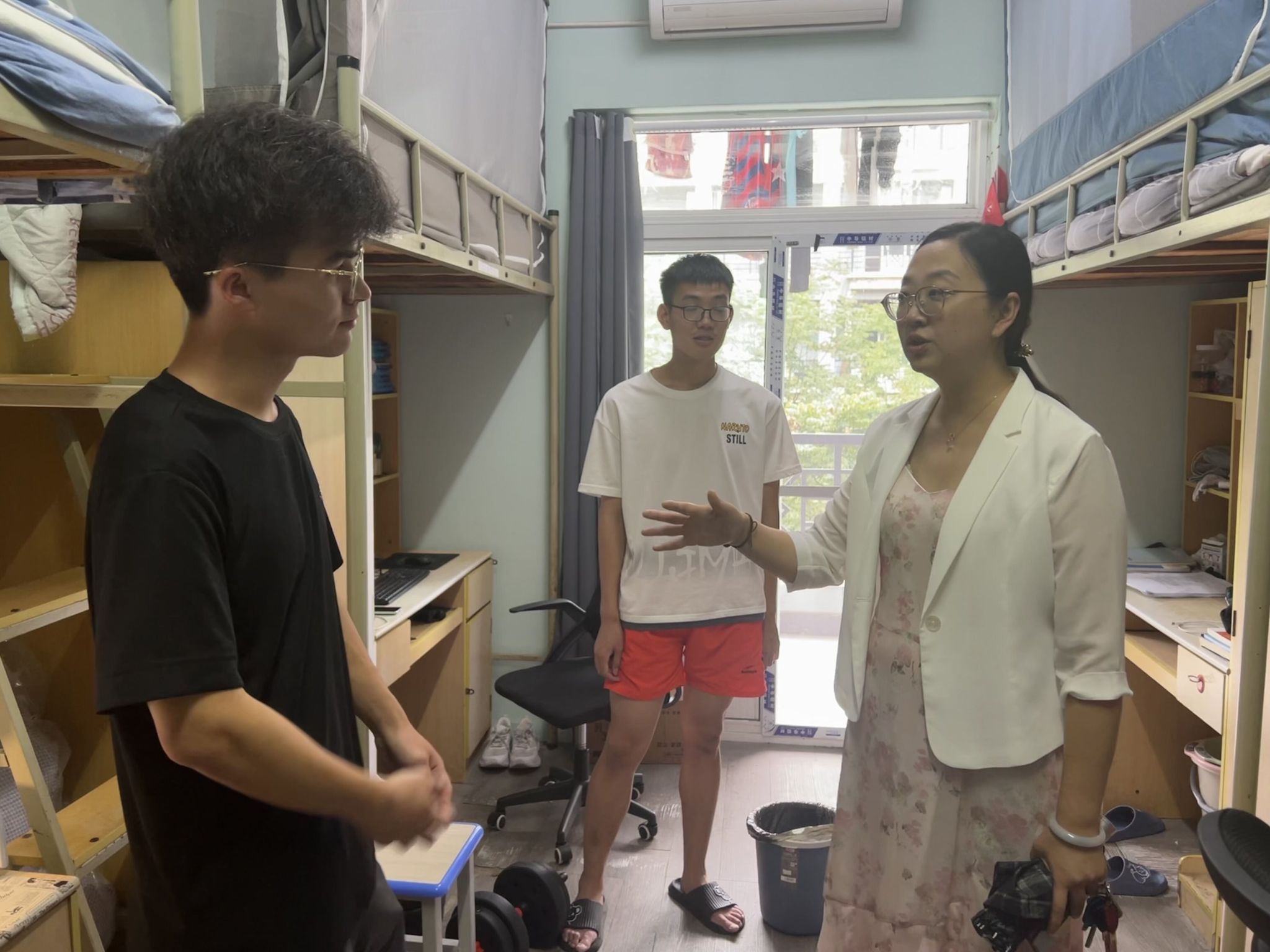 在走访过程中,孟佳和昌森栋先后来到多间学生宿舍。孟佳询问了学生们的学习和生活状况,她鼓励学生们珍惜大学时光,努力学习专业知识,不断提升综合素养。同时,她也对学生们的日常生活表示高度关心,“同学们在寝室的日常生活中有没有遇到什么问题?寝室内的设施是否完善?”孟佳向学生们仔细地询问道。