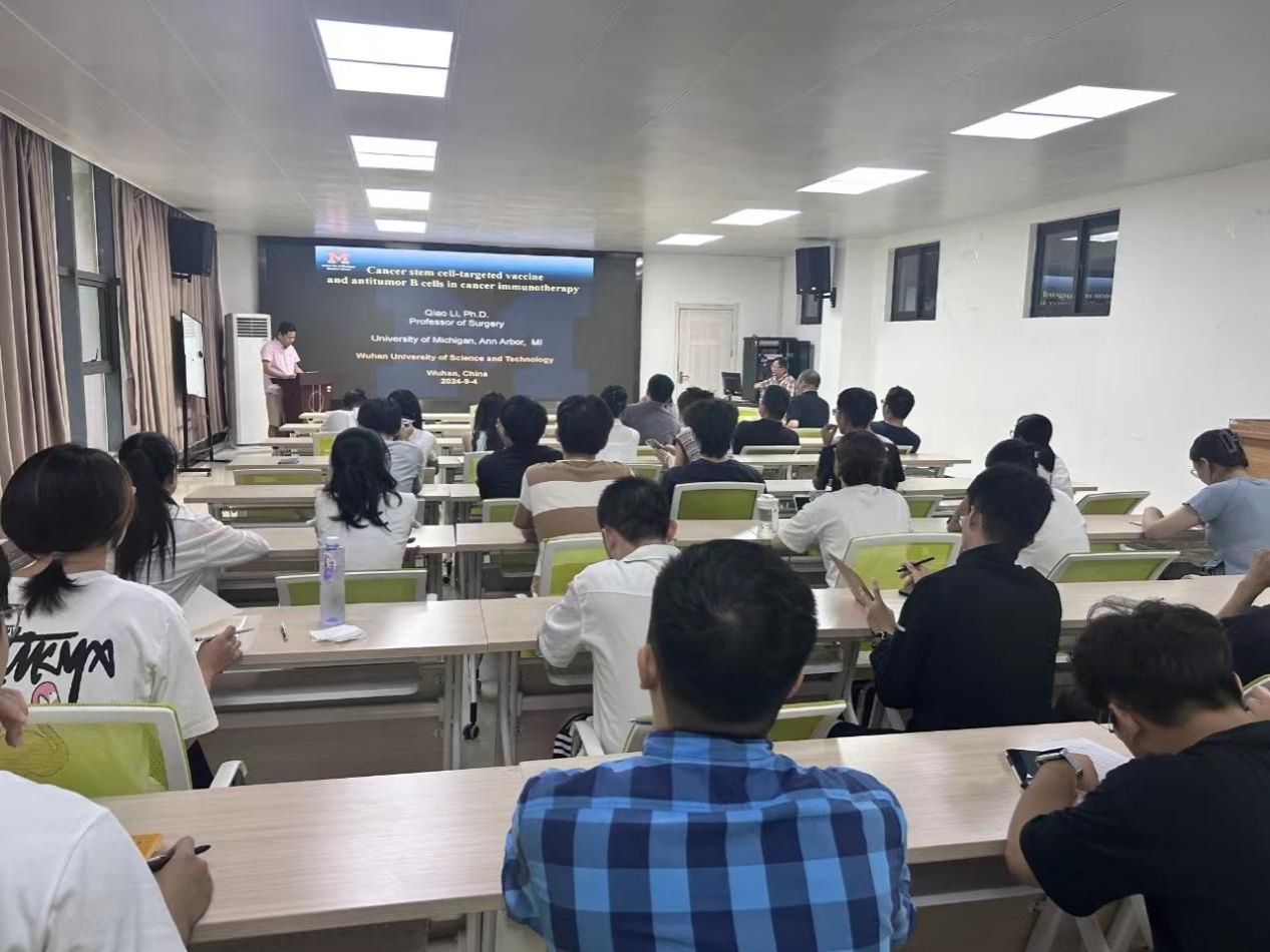 在讲座最后,与会师生积极提问,李峤耐心细致地解答了大家的疑惑。廖兴华说道:“本次精彩的学术报告让参会师生受益匪浅,不仅深入了解了利用具有抗肿瘤活性的免疫T、B淋巴细胞和靶向肿瘤干细胞的最新研究进展,还激发了学生们的科研热情,为进一步营造校园科研氛围、推动科学研究的深入发展奠定了坚实基础。”