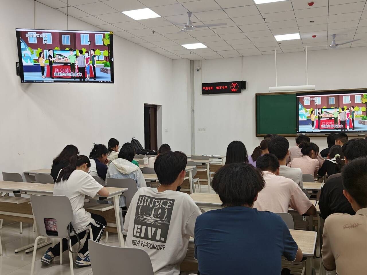 各班还集中观看了安全教育宣传片,在活动的最后孟佳总结道:“希望本次活动的开展可以进一步提高了同学们的安全防范意识,加强同学们处理应急安全事故的本领,大家一起为创造安全舒适的学习和生活环境共同努力。”