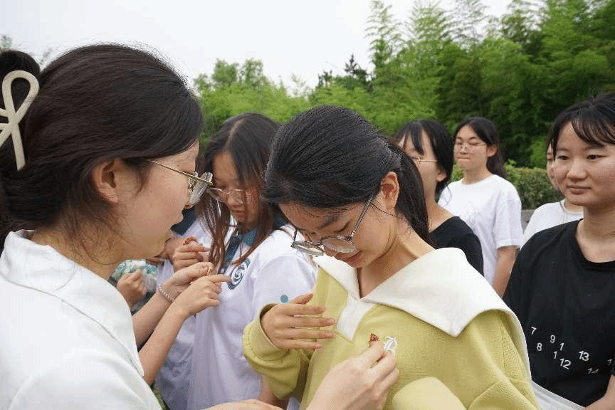 领导和毕业生党员代表为新发展的党员佩戴党徽,毕业生党员夏文新祝愿新党员们不忘初心,砥砺前行。随后,全体师生党员们面向党旗重温入党誓词。